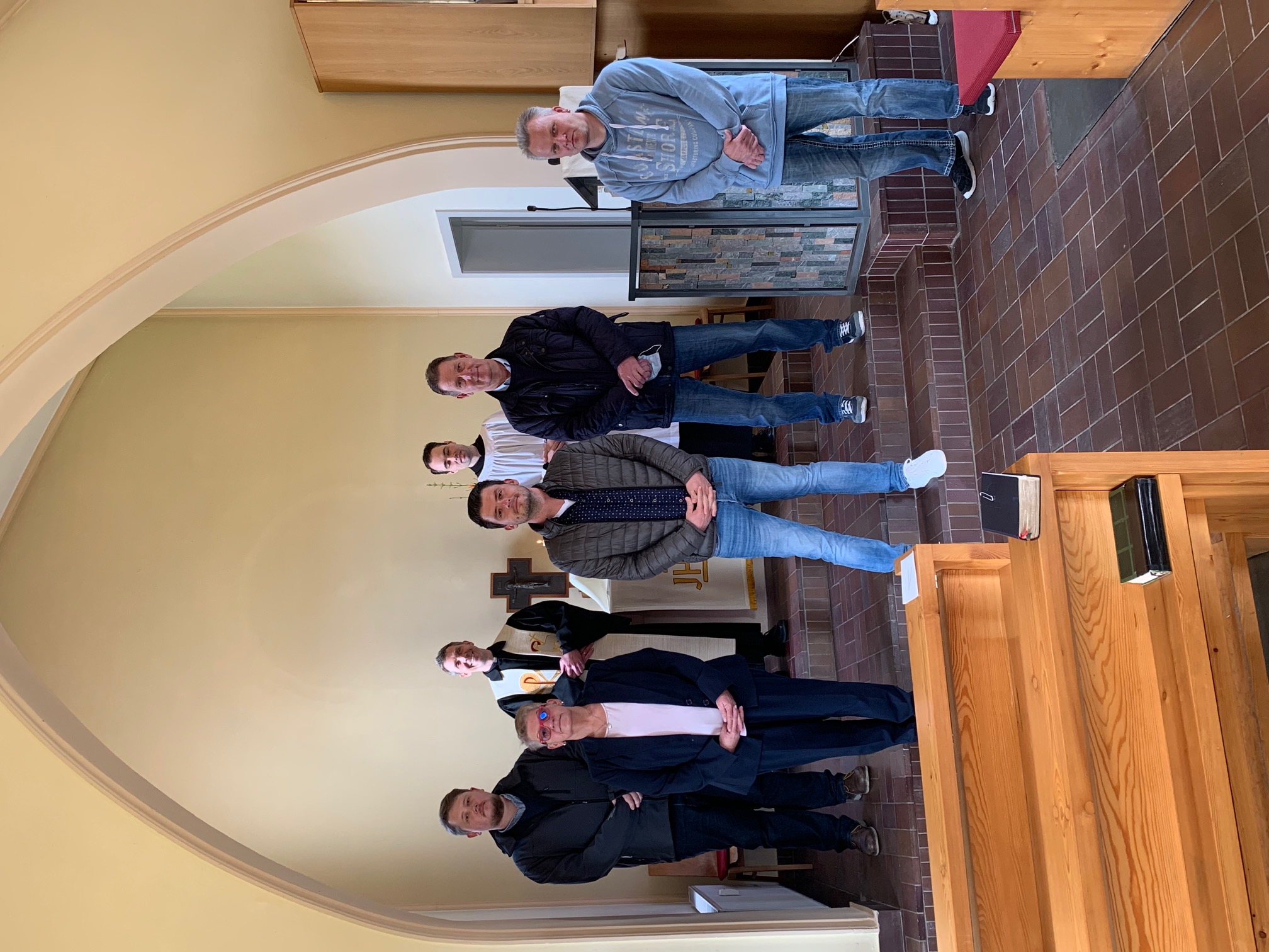 Das Bild zeigt den kompletten Vorstand v.l.n.r.: Tim-Christian Hebold, Annegret Beining, Pastor Ullrich Volkmar, Tim Niemann, Vikar Felix Hammer, Ulrich Pettenpaul, Karsten Meier.